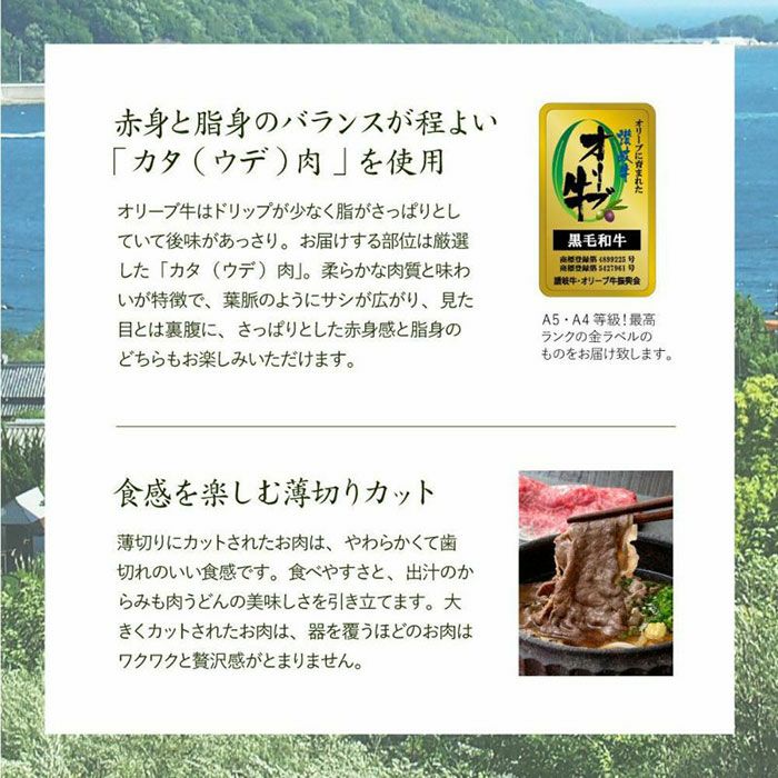 他の画像を見る 讃岐オリーブ牛の上質なうま味と柔らかさを堪能できる肉うどん 亀城庵 極上肉うどんセット 2食入 販売価格 ¥ 6,880 税込 讃岐オリーブ牛の上質なうま味と柔らかさを堪能できる肉うどん 詳細を見る お気に入りに登録する
