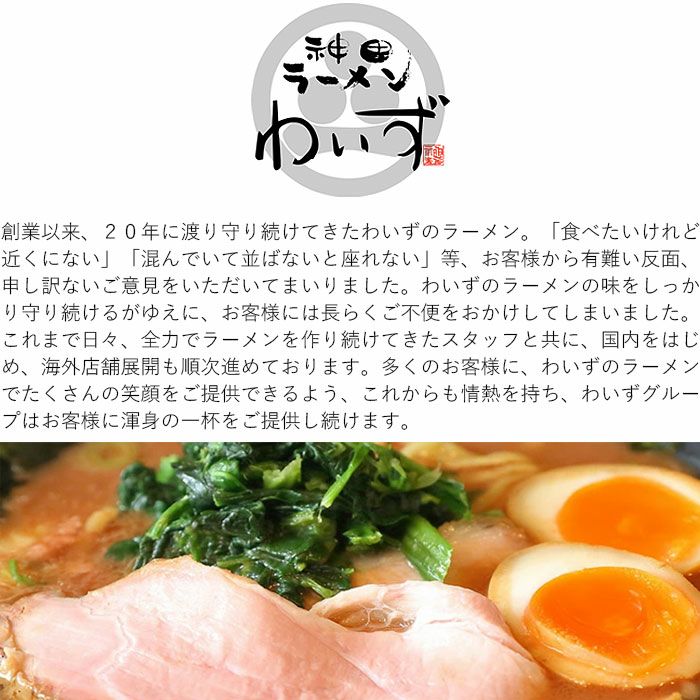 他の画像を見る 人気行列店が放つ、魂のこもった絶品ラーメン 【神田ラーメン わいず】ラーメン(3食入り) 販売価格 ¥ 4,480 税込 人気行列店が放つ、魂のこもった絶品ラーメン 詳細を見る お気に入りに登録する