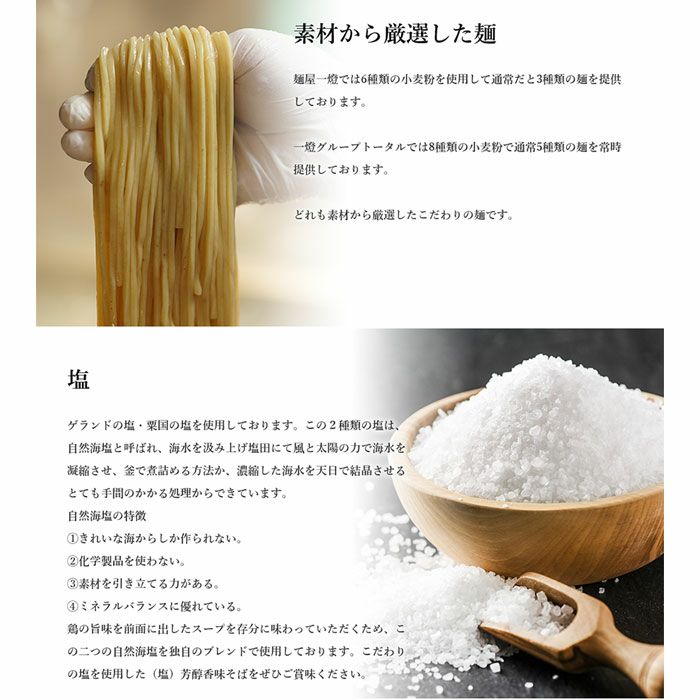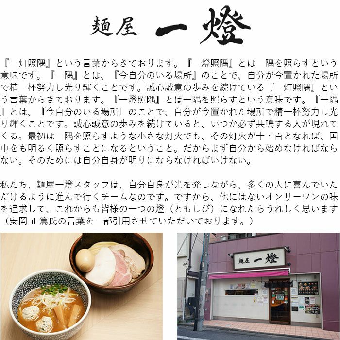 他の画像を見る 鶏団子が華を添える、こだわり抜いたつけめん 麺屋一燈 濃厚魚介つけ麺(3食分) 販売価格 ¥ 4,530 税込 鶏団子が華を添える、こだわり抜いたつけめん 詳細を見る お気に入りに登録する