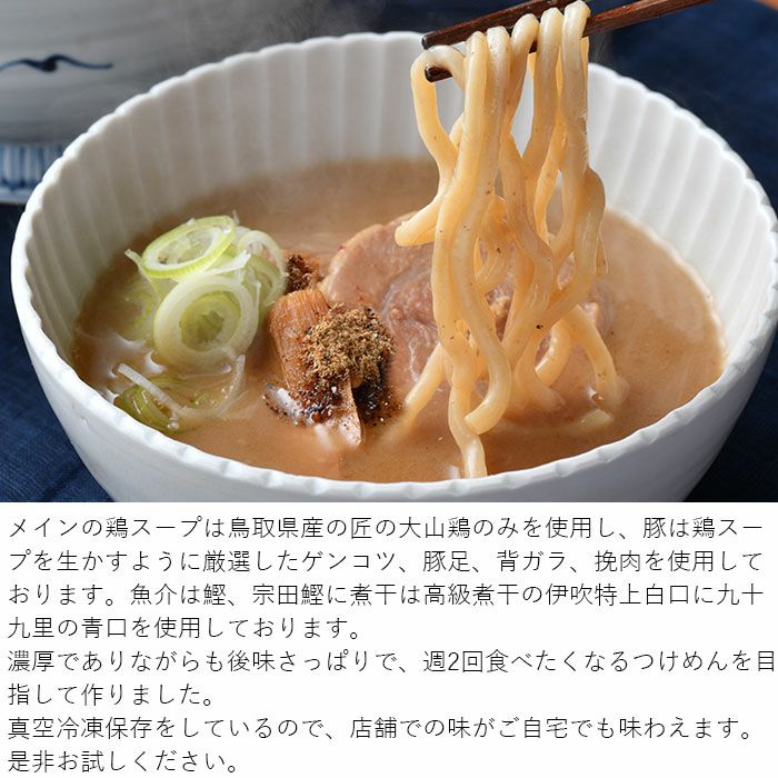 他の画像を見る 濃密な旨味が溢れ出す中濃鶏魚介つけめん 【つけめん さなだ】大山鶏のつけめん(3食入) 販売価格 ¥ 4,480 税込 濃密な旨味が溢れ出す中濃鶏魚介つけめん 詳細を見る お気に入りに登録する