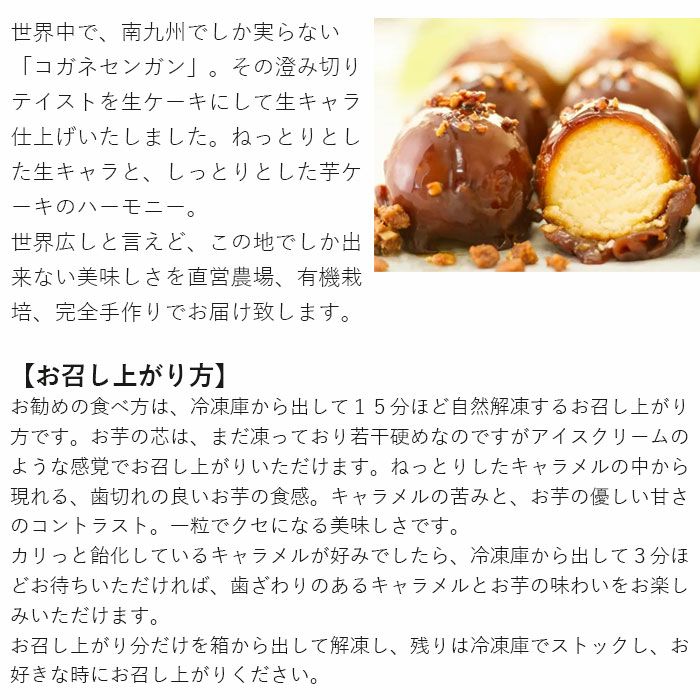 他の画像を見る コガネセンガンと焦がしキャラメルが出会い、一粒の美味しさに 一粒のケーキ(10個入) 販売価格 ¥ 3,830 税込 コガネセンガンと焦がしキャラメルが出会い、一粒の美味しさに 詳細を見る お気に入りに登録する